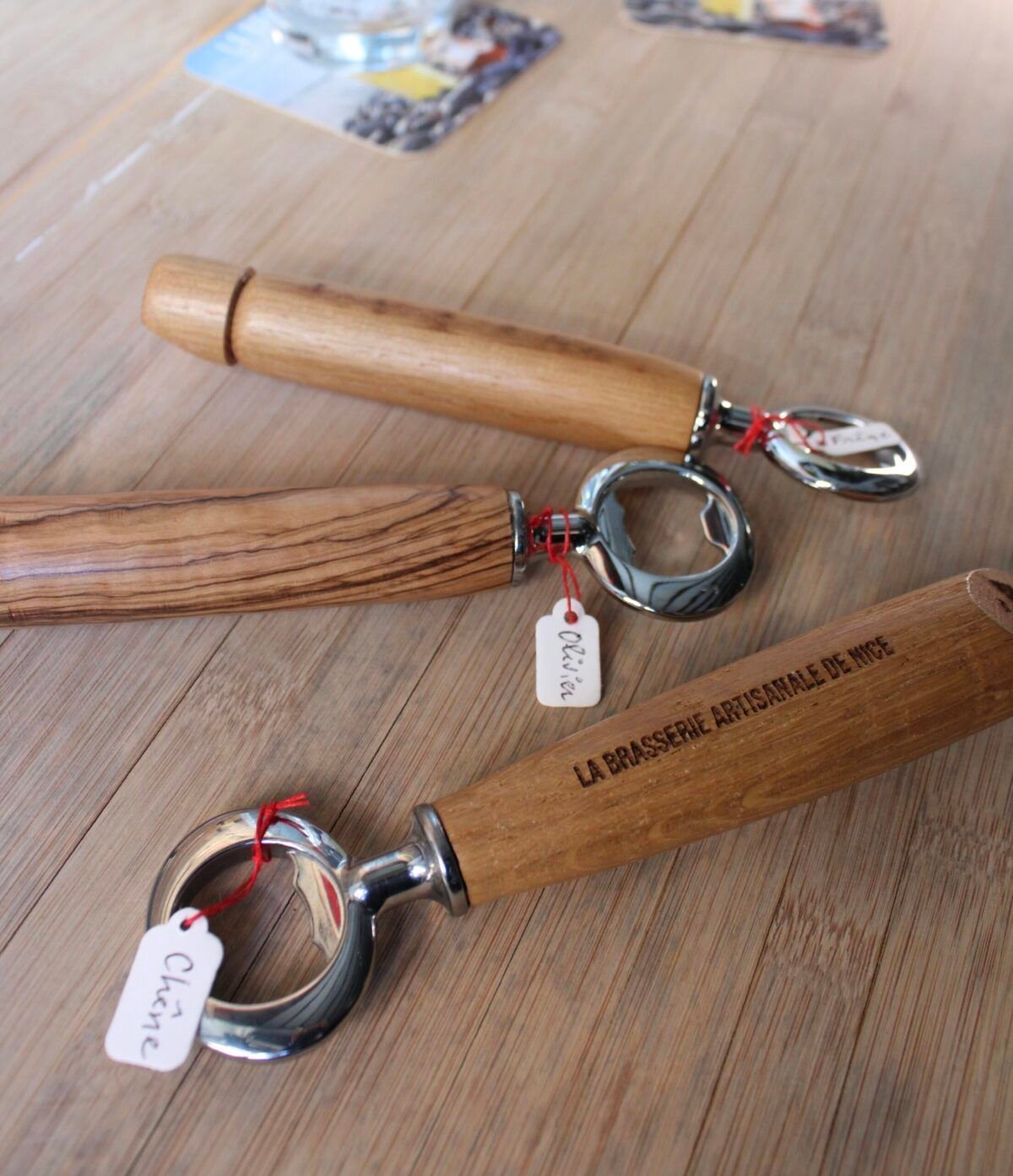 Nos décapsuleurs en bois, façonnés par Papi Dany, passionné par l’univers du bois, ou ses créations uniques allient artisanat local et praticité.