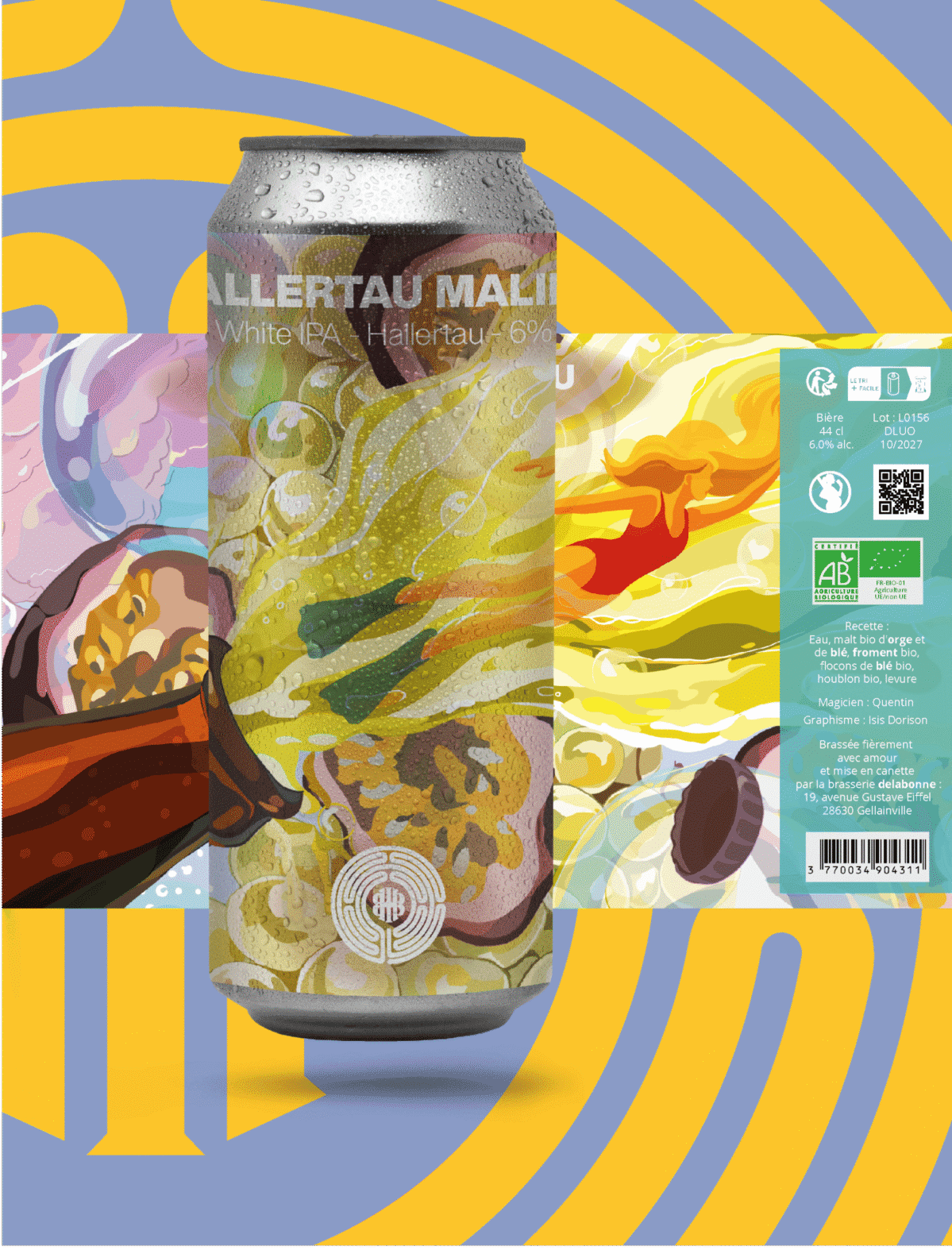 White IPA brassée au houblon Hallertau Blanc, notes aromatiques de vin, pamplemousse, cassis, raisin -TAV 6.3 %. IBU 44 EBC 10