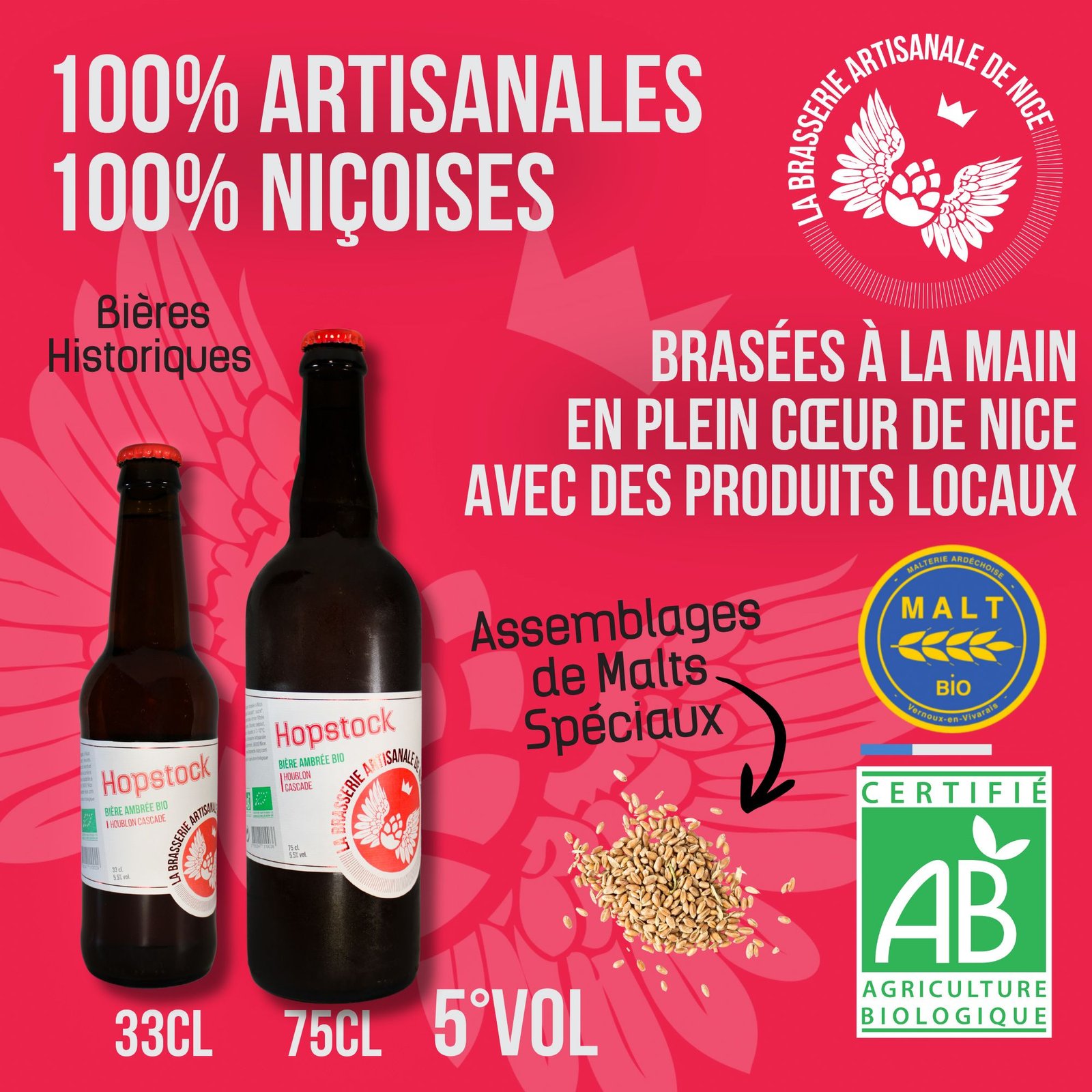 Signaler un abusHopstock Notre savoureuse bière ambrée Hopstock est une bière ambrée particulièrement aromatique, inspirée par les Amber Ale américaines. Son nom est un hommage à la plante qui lui procure son profil aromatique : le houblon (Hop en anglais). Le houblon Cascade qui entre dans sa composition est particulièrement prisé pour la fabrication des IPA et Pale Ale. Notes de dégustation de notre bière ambrée Bière ambrée dotée d’une amertume affirmée, élégamment orchestrée Mousse consistante et de bonne tenue Nez intense, élégant, fruité et épicé, légèrement résineux Pétillance soutenue. Texture consistante et enveloppante.