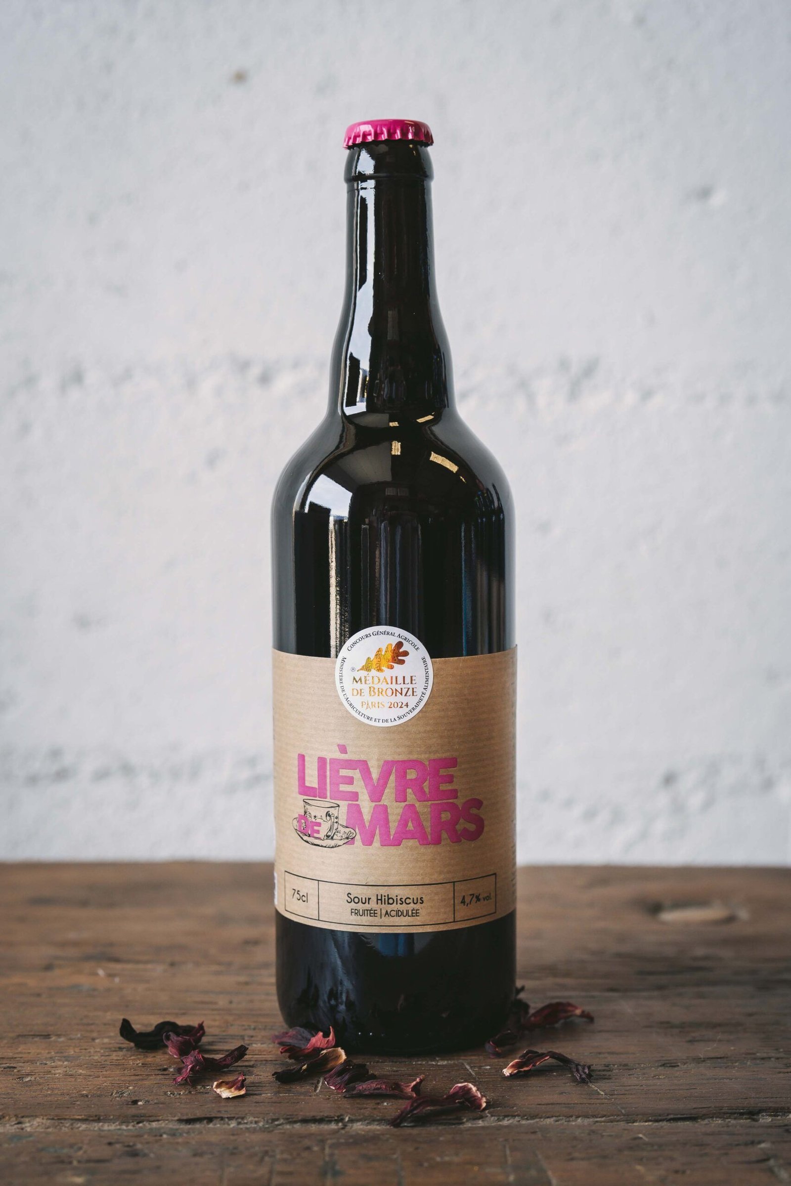 LIEVRE DE MARS est une bière finement acidulée très rafraichissant. Grace à son infusion de fleurs d’hibiscus, elle offre des arômes de fruits rouges et des notes florales sans sucrosité.
