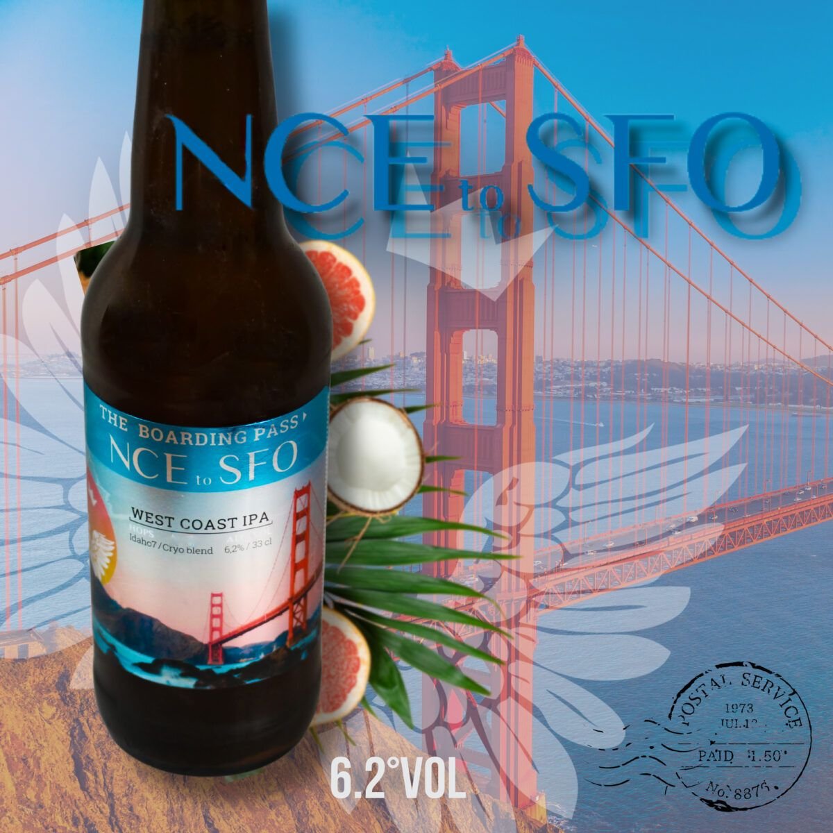 Signaler un abusNCE to SFO La bière globe-trotter Bienvenue sur le vol en direction de San Francisco, berceau du renouveau des bieres artisanales dans les année 90. En possession de votre Boarding pass NCE to SFO, votre voyage commence avec cette bière IPA aux saveurs de fruits tropicaux. Welcome on Board Notes de Dégustation de notre West Coast IPA : Bière blonde légèrement voilée La mousse est de bonne tenue Le nez est une explosion de houblons fruités, de type pèche, abricot, fruits exotiques… En bouche, ces arômes de fruits se confirment, l’amertume recherchée est présente, et la longueur des saveurs est sans fin Une bière inspirée par les IPA américaines de la côte ouest. Un terroir où les houblons fruités poussent à merveille. Une invitation aux voyages.