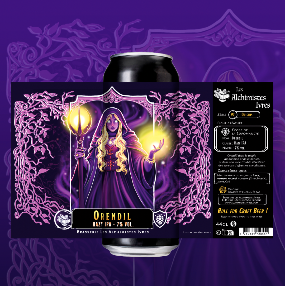 « Orendil » Hazy Ipa, ses houblons explosifs, aromatiques autant qu’amers, tendent à dominer ses malts d’orge légèrement sucrés. Son parfum penche dans le camp du citron et des fruits tropicaux, alors que ses saveurs et son amertume s’expriment aussi dans le pamplemousse. Sa couleur trouble amène un coté gourmand à sa fraicheur. Couleur orange à la mousse généreuse, bulle moyenne, 7,2 % Alc. Houblons : Citra / Mosaïc IBU43 EBC 10